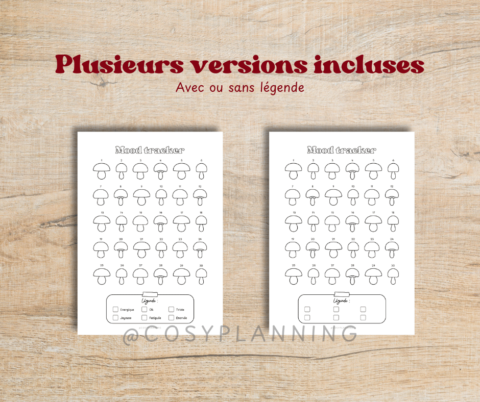 - 2 pages "Mood tracker champignons" avec et sans légende