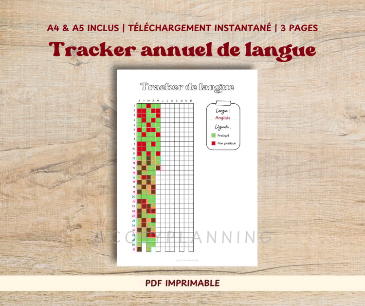 - Une page "tracker de temps d'écran" avec légende vierge