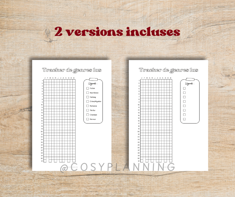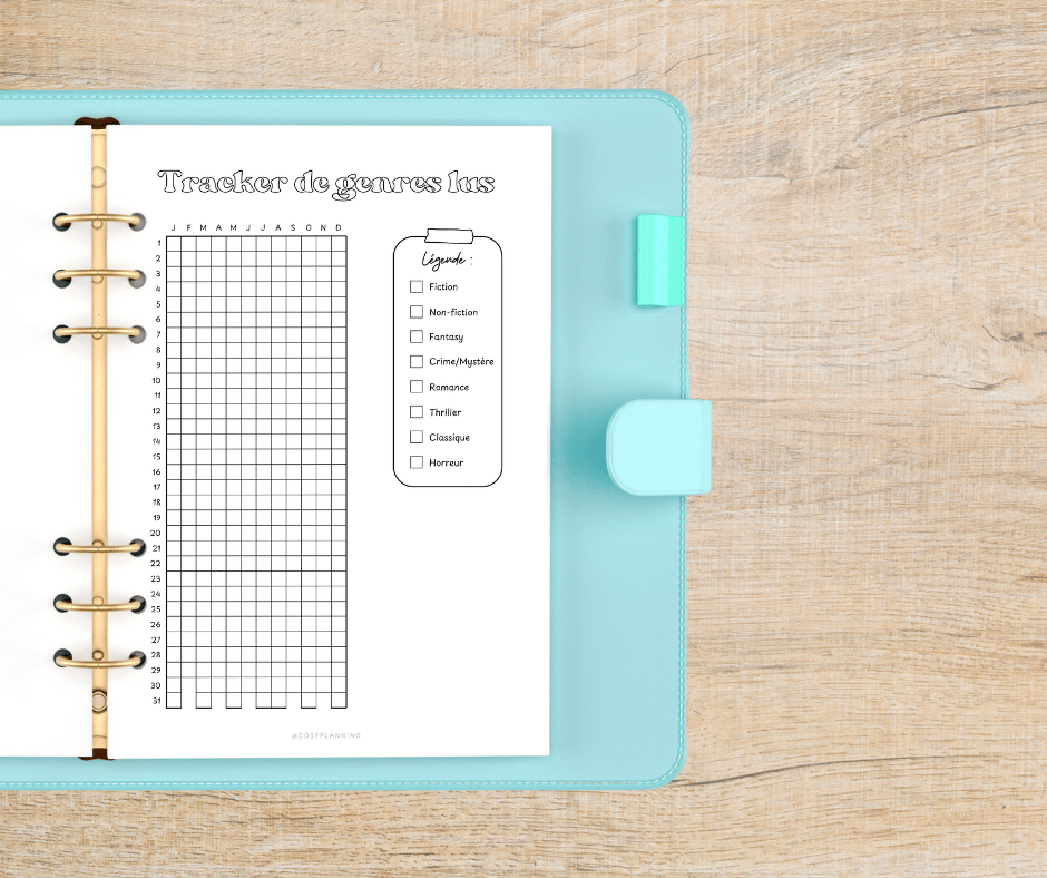 - Une page "Tracker annuel de genres lus" + légende vierge