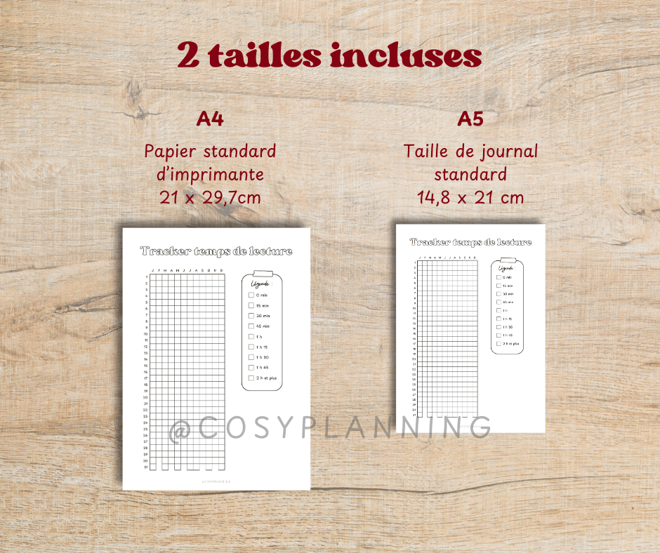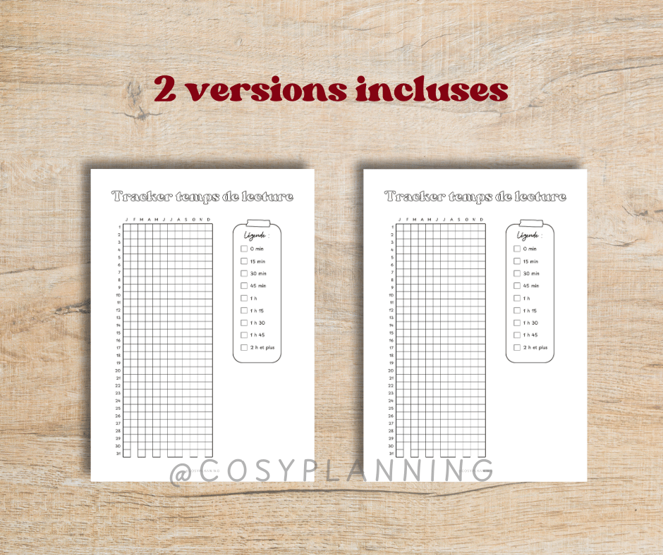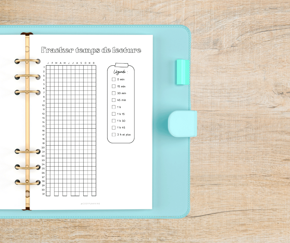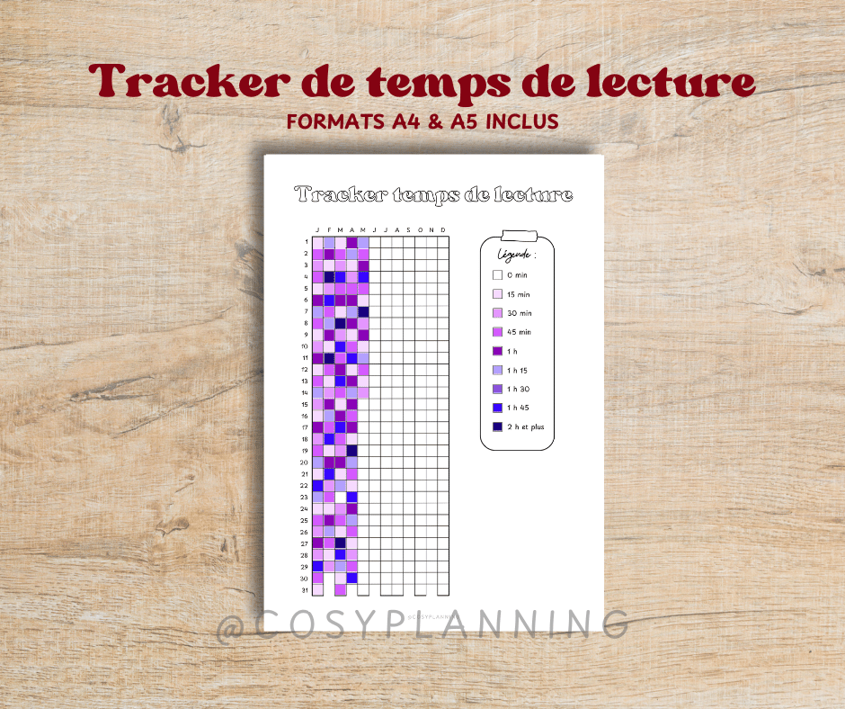 - Une page "Tracker annuel de temps de lecture" + légende vierge