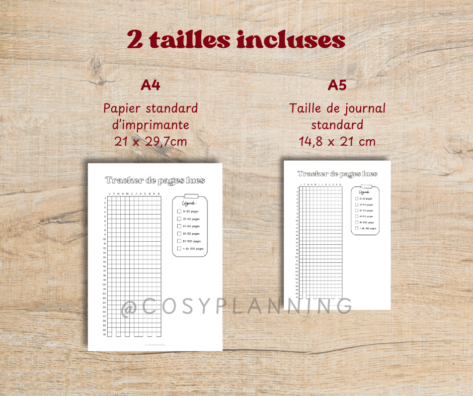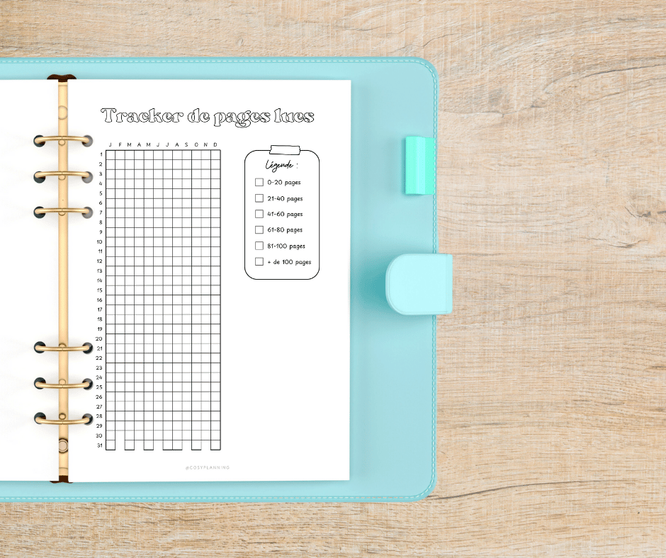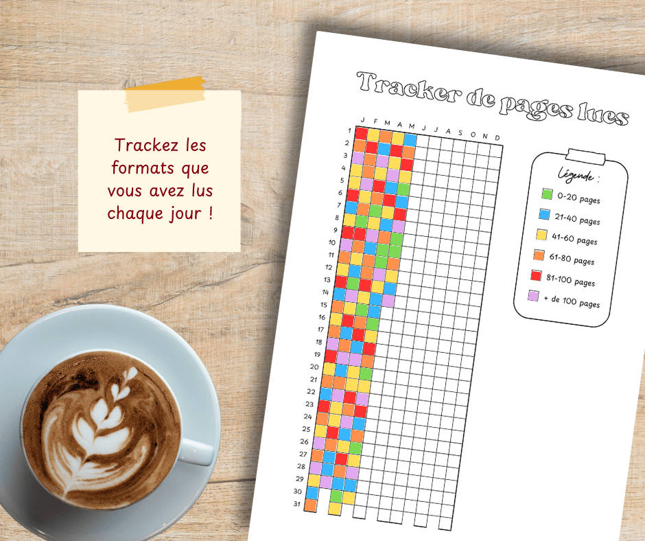 - Une page "Tracker annuel de pages lues" + légende vierge