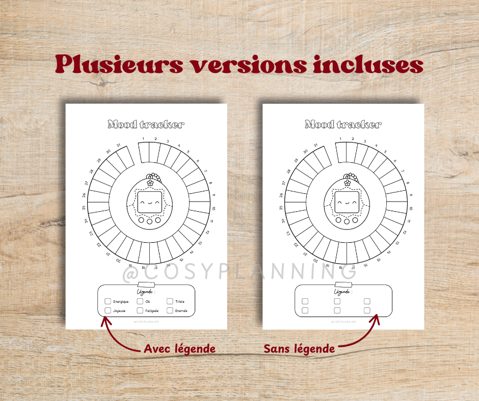 - Un mood tracker simple sur 31 jours (version avec et sans légende)