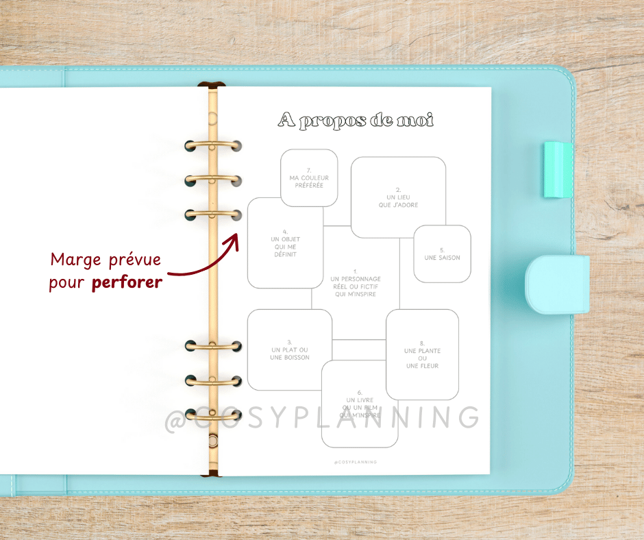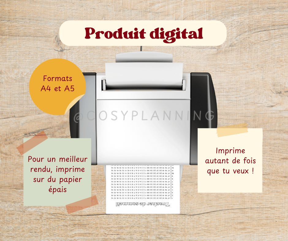 - Imprime les pages que tu veux utiliser : en A4 ou A5 selon ton planner.
