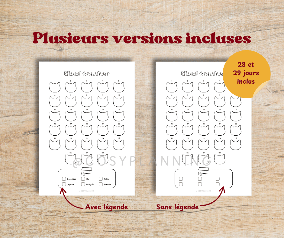 - 2 pages "Mood tracker Chats" avec et sans légende