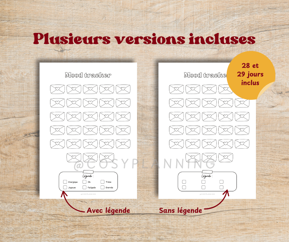 - 2 pages "Mood tracker Lettres d'amour" avec et sans légende