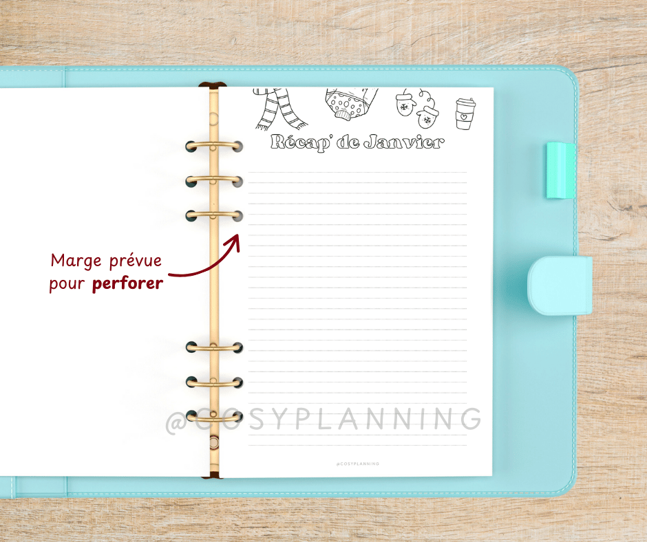 - Imprime les pages que tu veux utiliser : en A4 ou A5 selon ton planner.