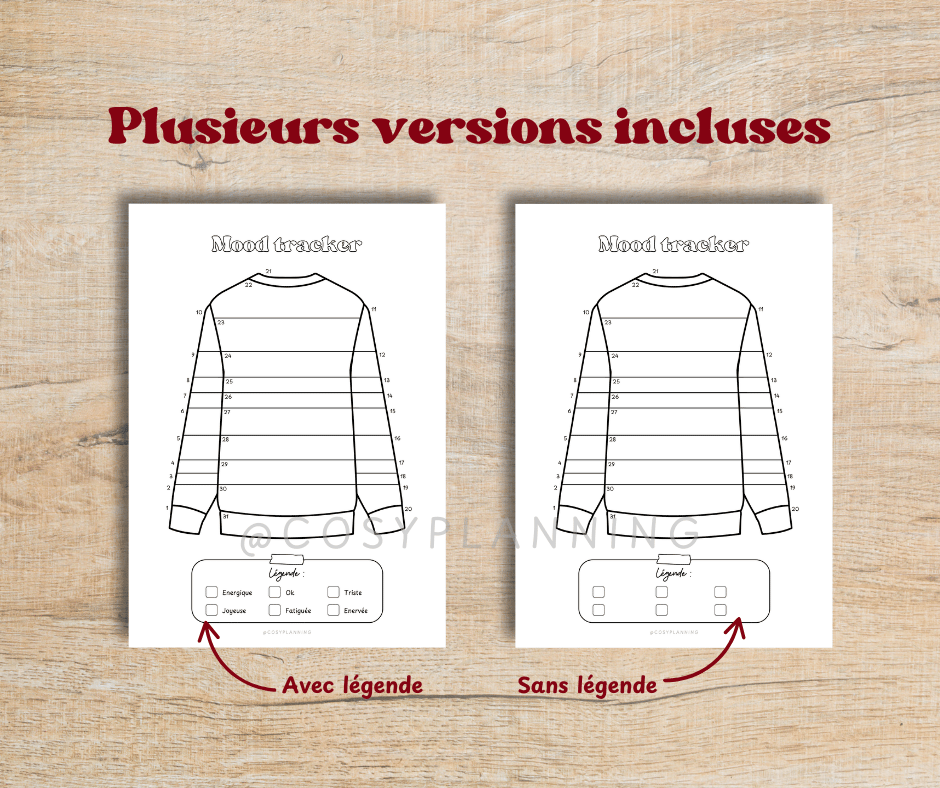 - 2 pages "Mood tracker Pull" avec et sans légende