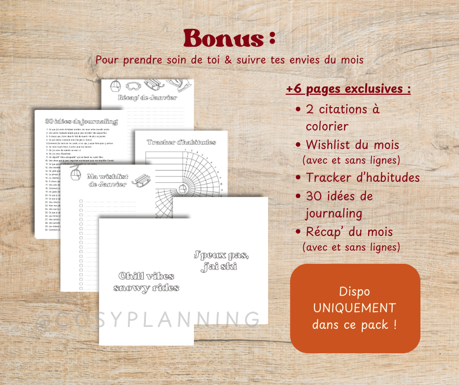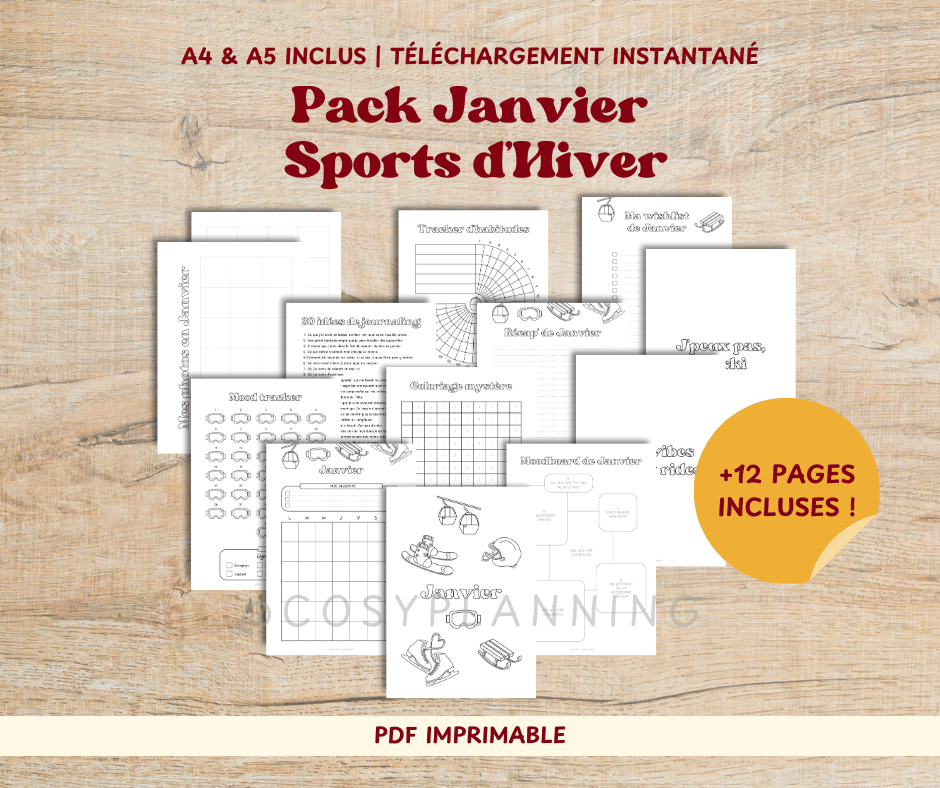 Prépare ton mois de janvier dans une ambiance douce et hivernale avec ce pack complet sur le thème des sports d’hiver.