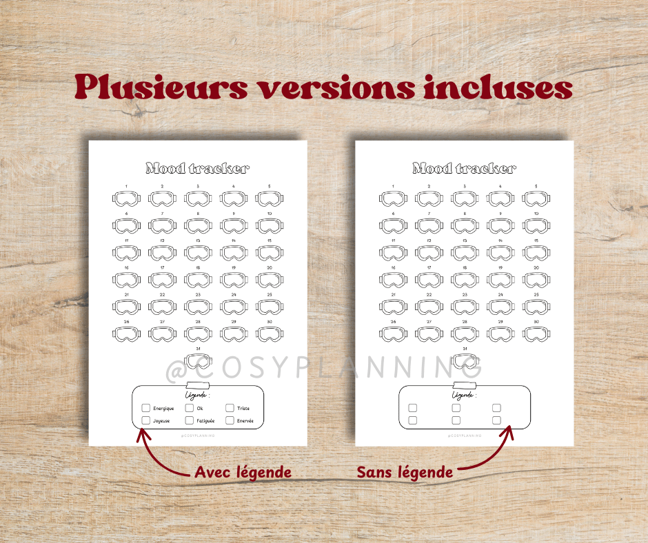 - 2 pages "Mood tracker Lunettes de ski" avec et sans légende