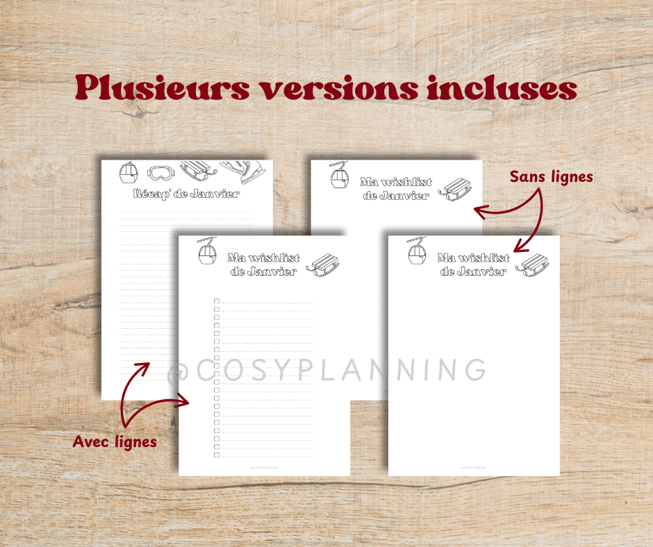 - 2 pages "Wishlist de Janvier" avec et sans to do list