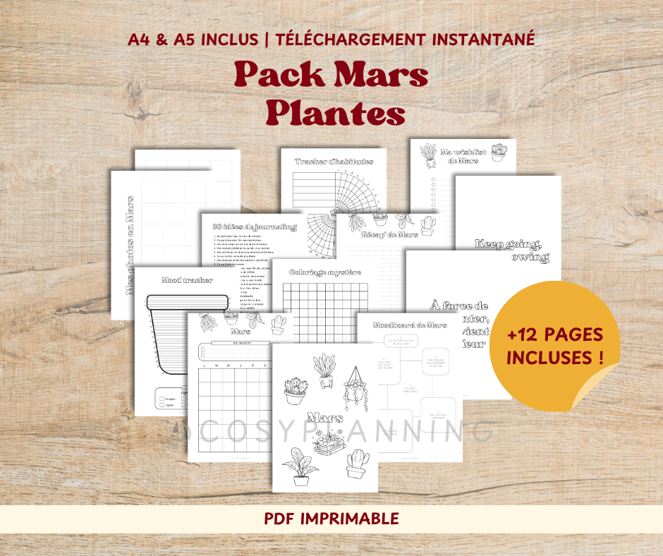 Prépare ton mois de mars dans une ambiance jardinage avec ce pack complet sur le thème des plantes.