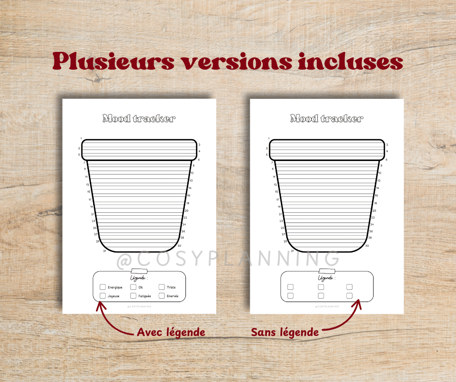 - 2 pages "Mood tracker pot de fleurs" avec et sans légende