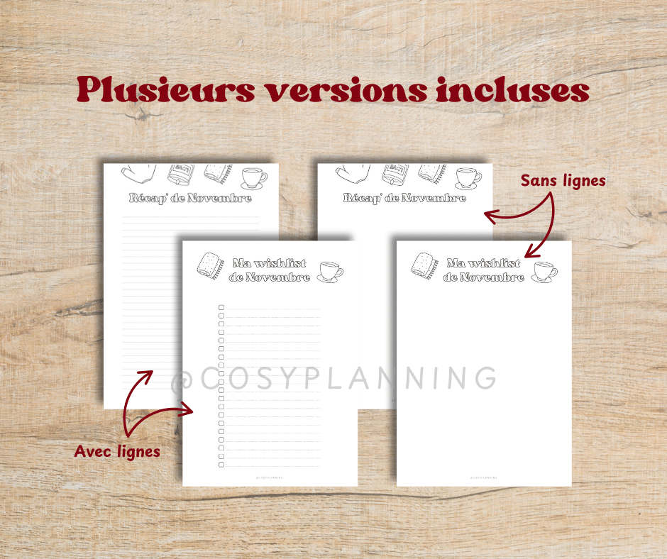 - 2 pages "Récap' de Novembre" avec et sans lignes