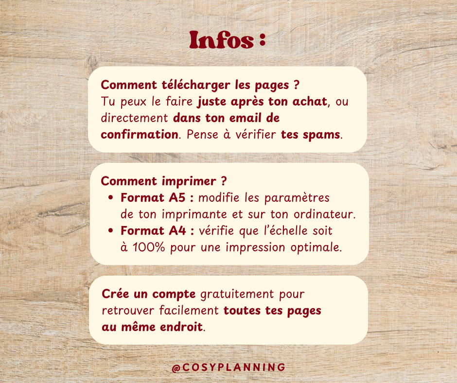 Pour imprimer chez vous, je vous recommande de régler les paramètres de votre imprimante de manière à ce que la qualité soit optimale avec l'échelle à 100 % et que vos cartouches d'encre soient pleines pour une qualité d'impression nette et claire !