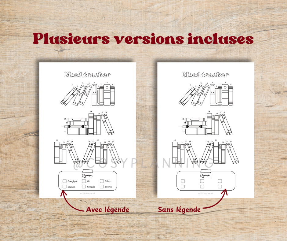 - 2 pages "Mood tracker livres" avec et sans légende